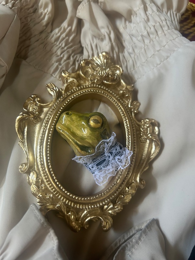 オシャレに着飾ったカエルさんのブローチ こちらの生き物ブローチは型抜きなどはせず、一から爪楊枝でお顔を形成し、製作しております ですので同じお顔は2度と生まれない貴重な作品となっております あなたただけの相棒をぜひ見つけてください♪ サイズ約5センチ また、石粉粘土いう素材で作っており、周りにレジン加工をしているのです強い衝撃などを与えますとこちらも壊れてしまう原因となります。お気をつけくださいませ ◉発送から商品到着まで◉ 発送してから到着まで2日から1週間ほどお日にちいただいております ⚠︎商品ご購入日からのお日にちではありません。発送してからのお日にちとなりますのでご注意ください 発送方法 通常配送はクリックポスト(300円 配送料+梱包代)で発送いたしますが複数作品ご購入していただいた場合、クリックポストですと箱に収まらないことがありますため違う配送方法となることがございます。あらかじめご了承ください