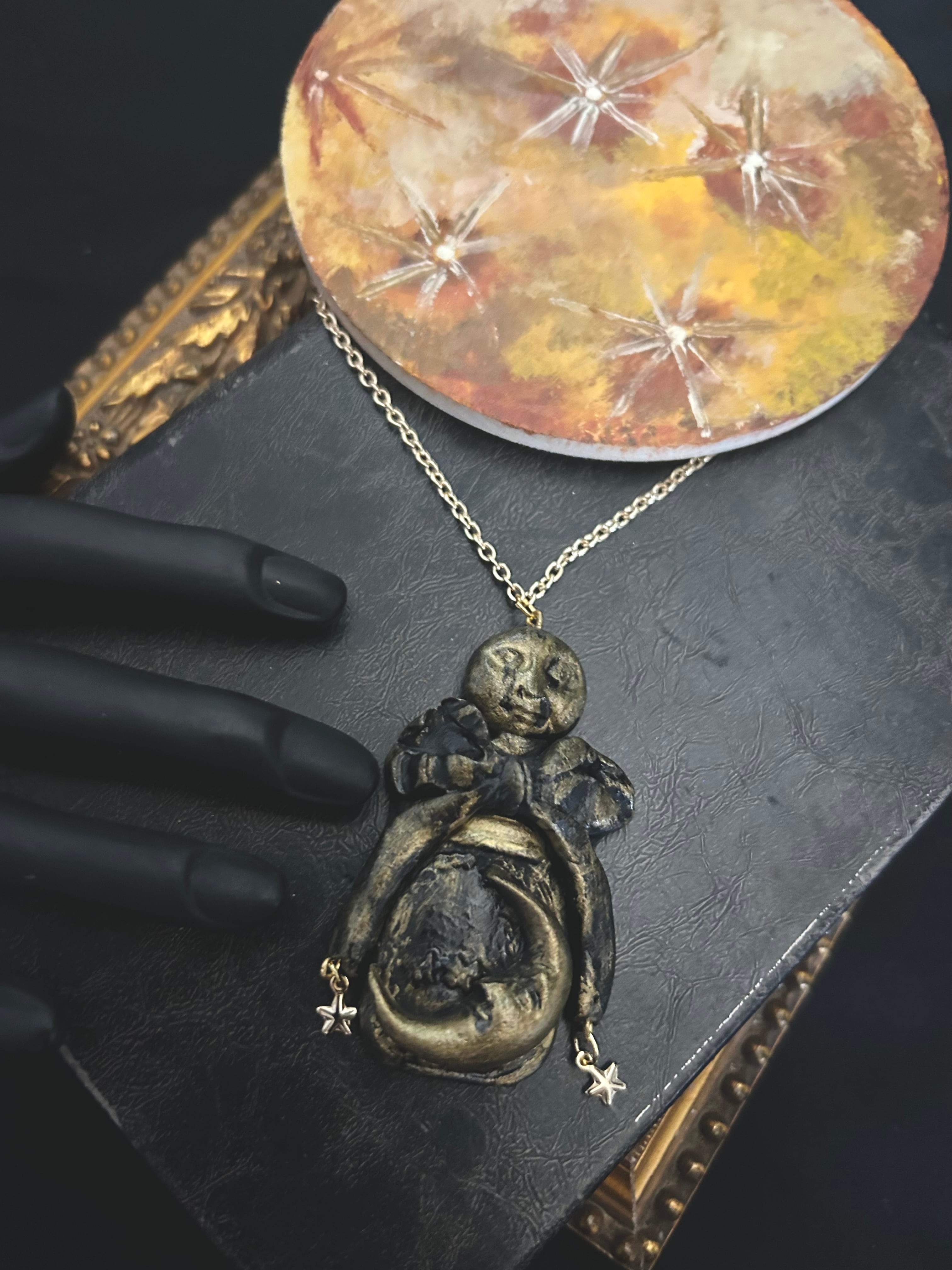お月様の蓋がそっと閉められた星屑を溜めた香水瓶のネックレス