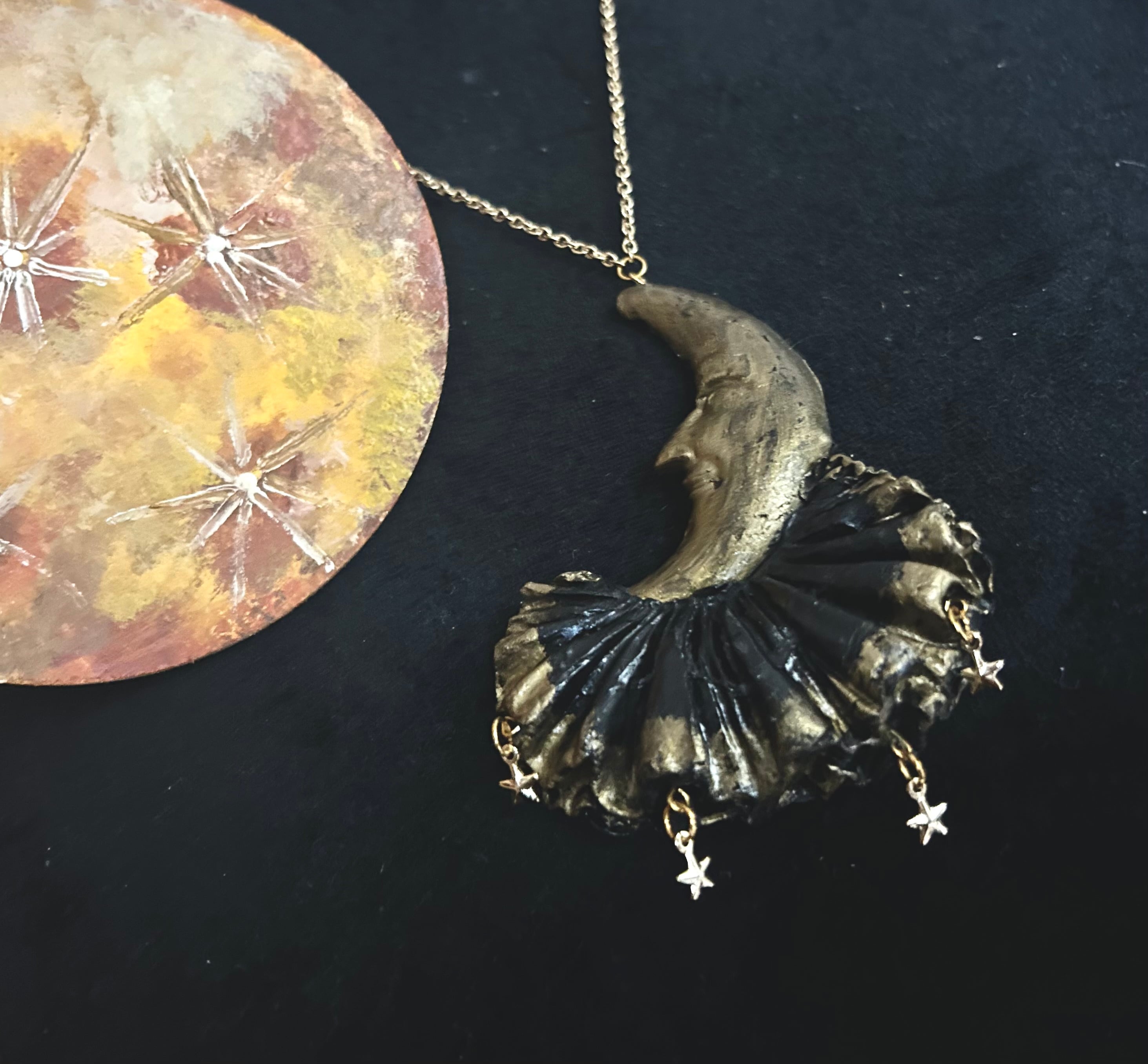 お月様の首元のフリルには4つの美しい星たちがキラキラと輝く