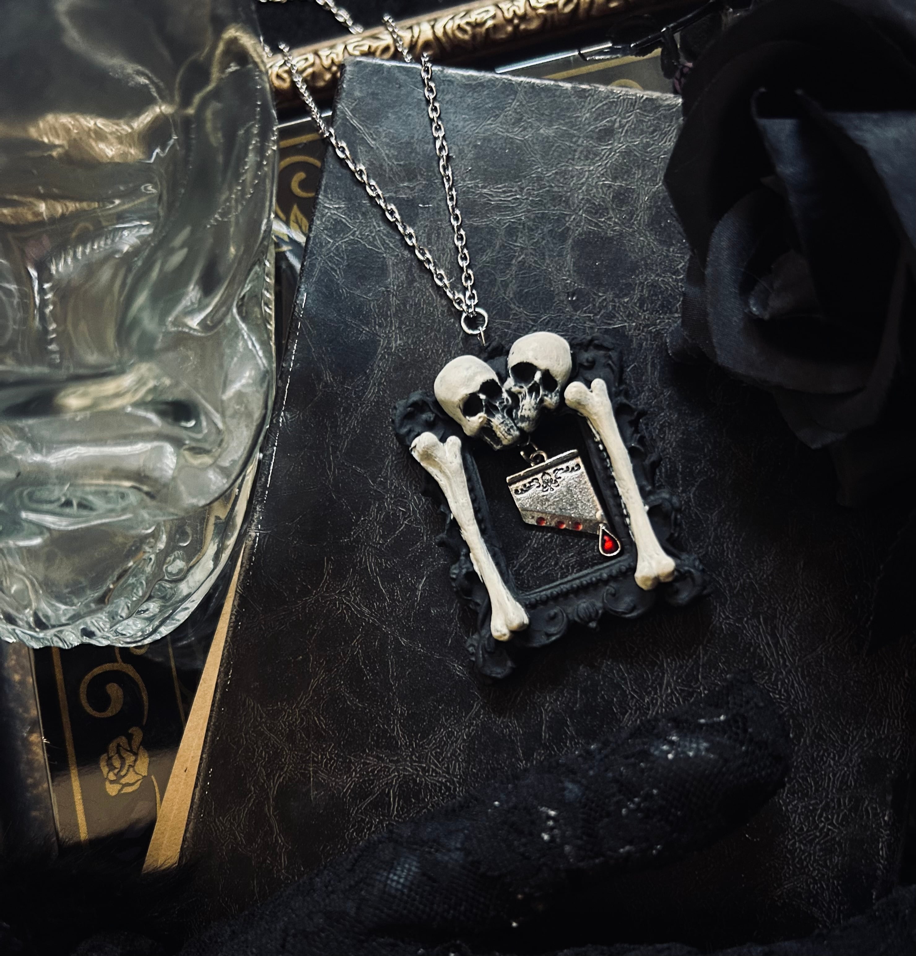 寄り添い合うように2つの頭蓋骨が次の頭を狙い撃つギロチンネックレス