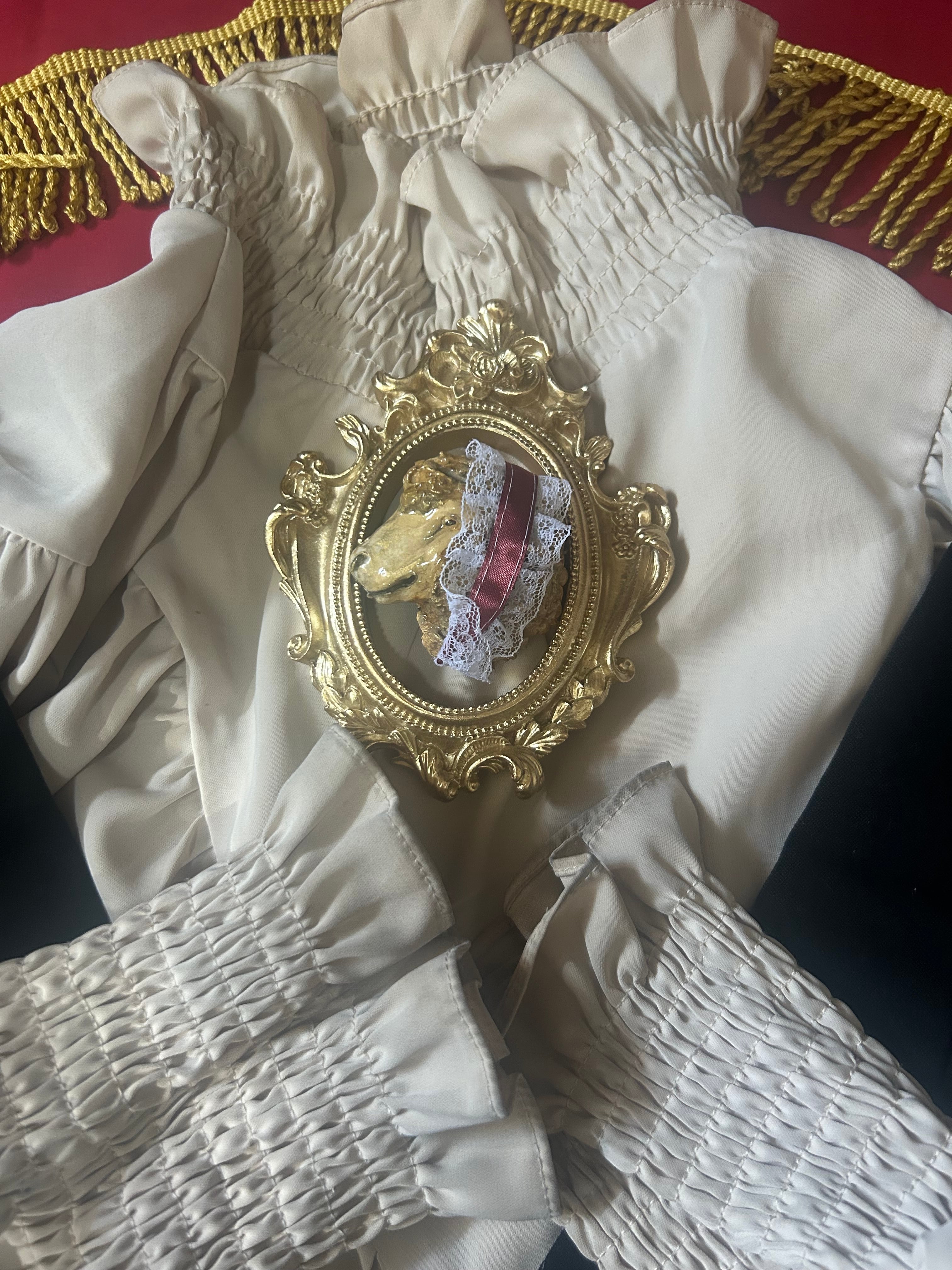 ヘッドドレスを着飾った可愛らしいヒツジさんのブローチ