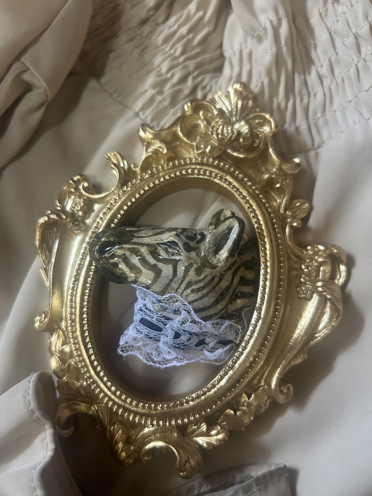 オシャレに着飾ったシマウマさんのブローチ