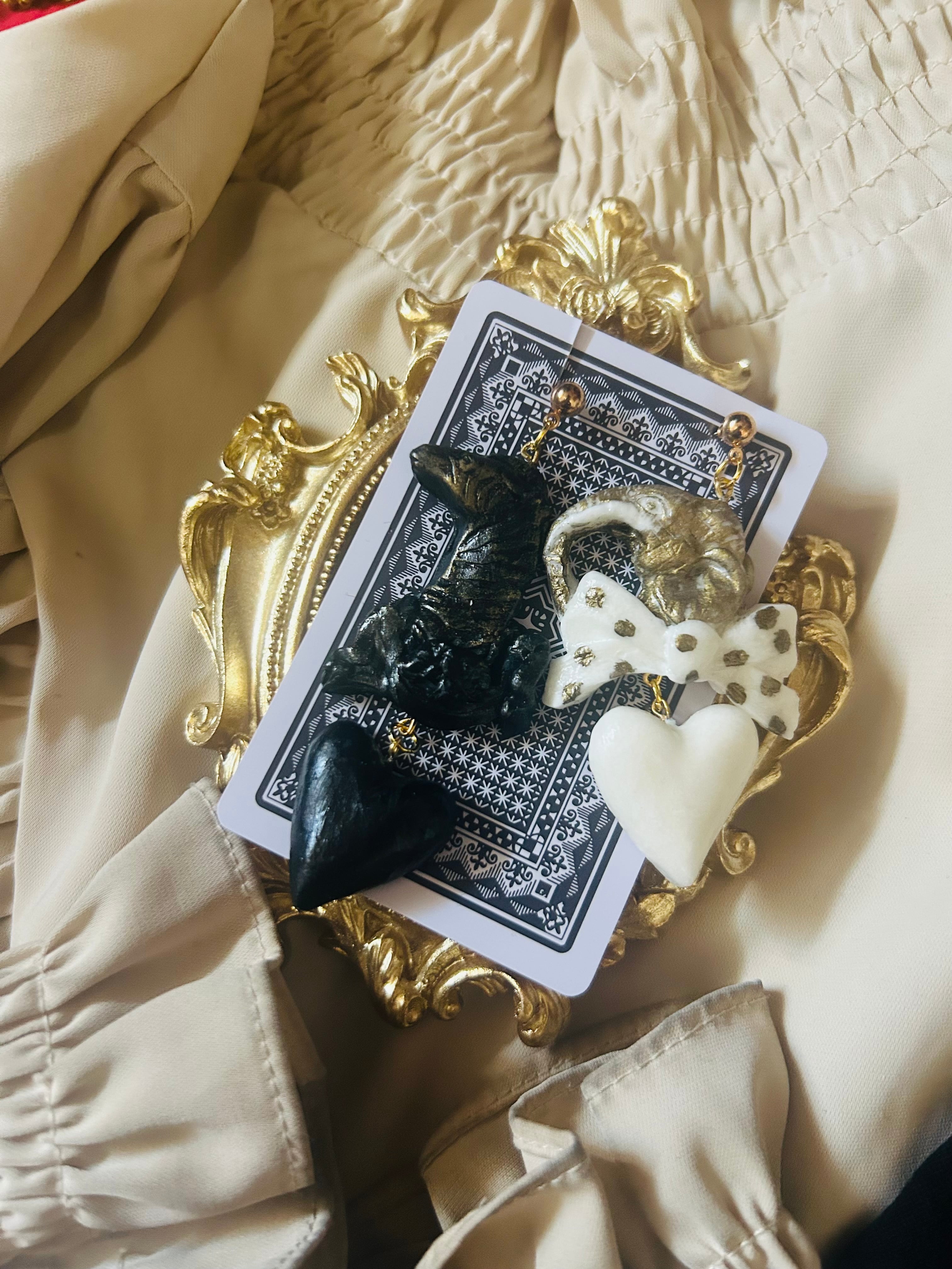 モノクロサーカス団の黒いシマウマさんと白いゾウさんのピアス(ピアスはイヤリングにも変更できますので必ずオプション欄よりどちらかお選びください)