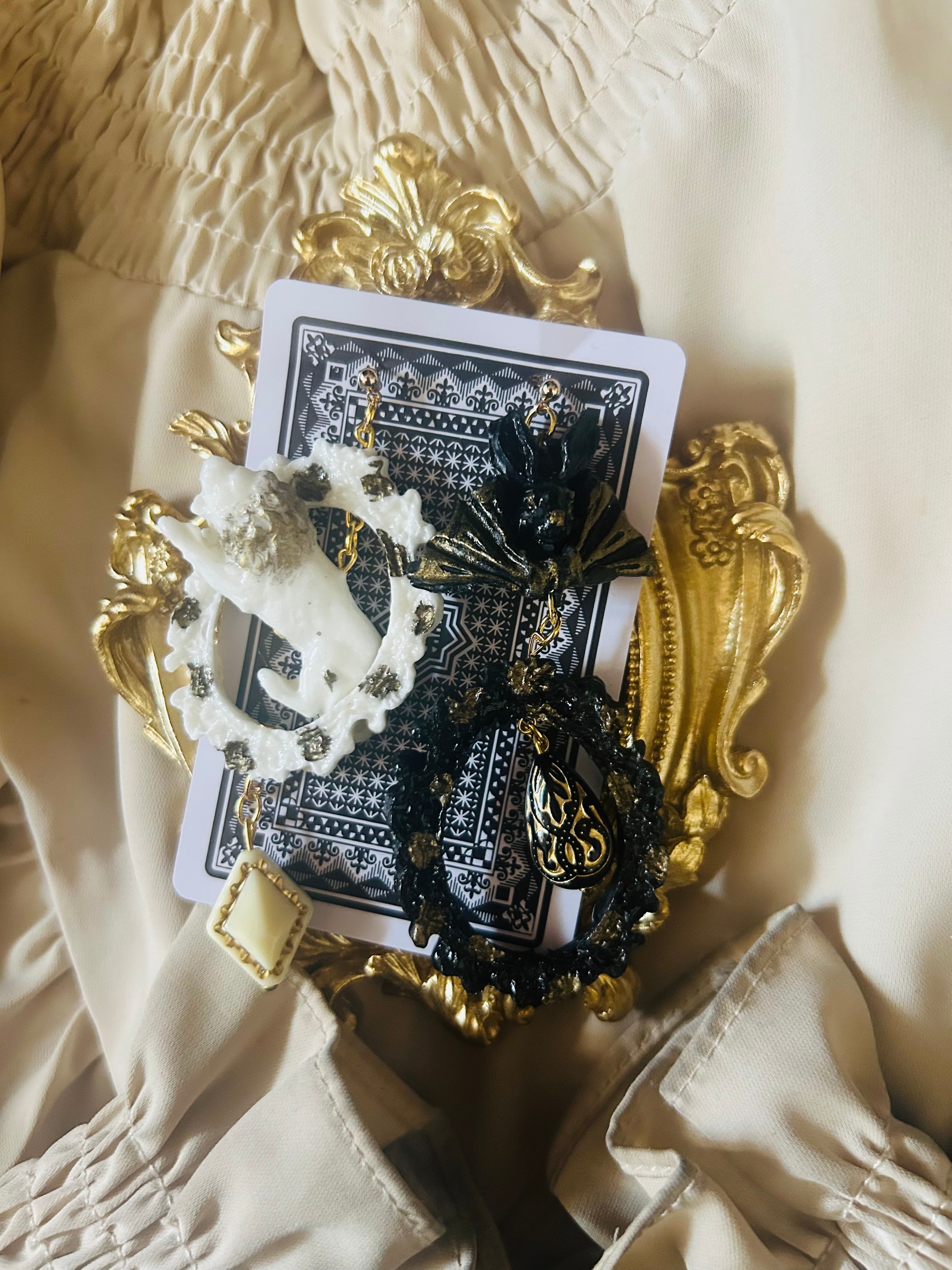 モノクロサーカス団の白いライオンさんと黒いウサギさんのピアス(ピアスはイヤリングにも変更できますのでご購入の際はどちらか選択するのを忘れないようにお願いいたします)