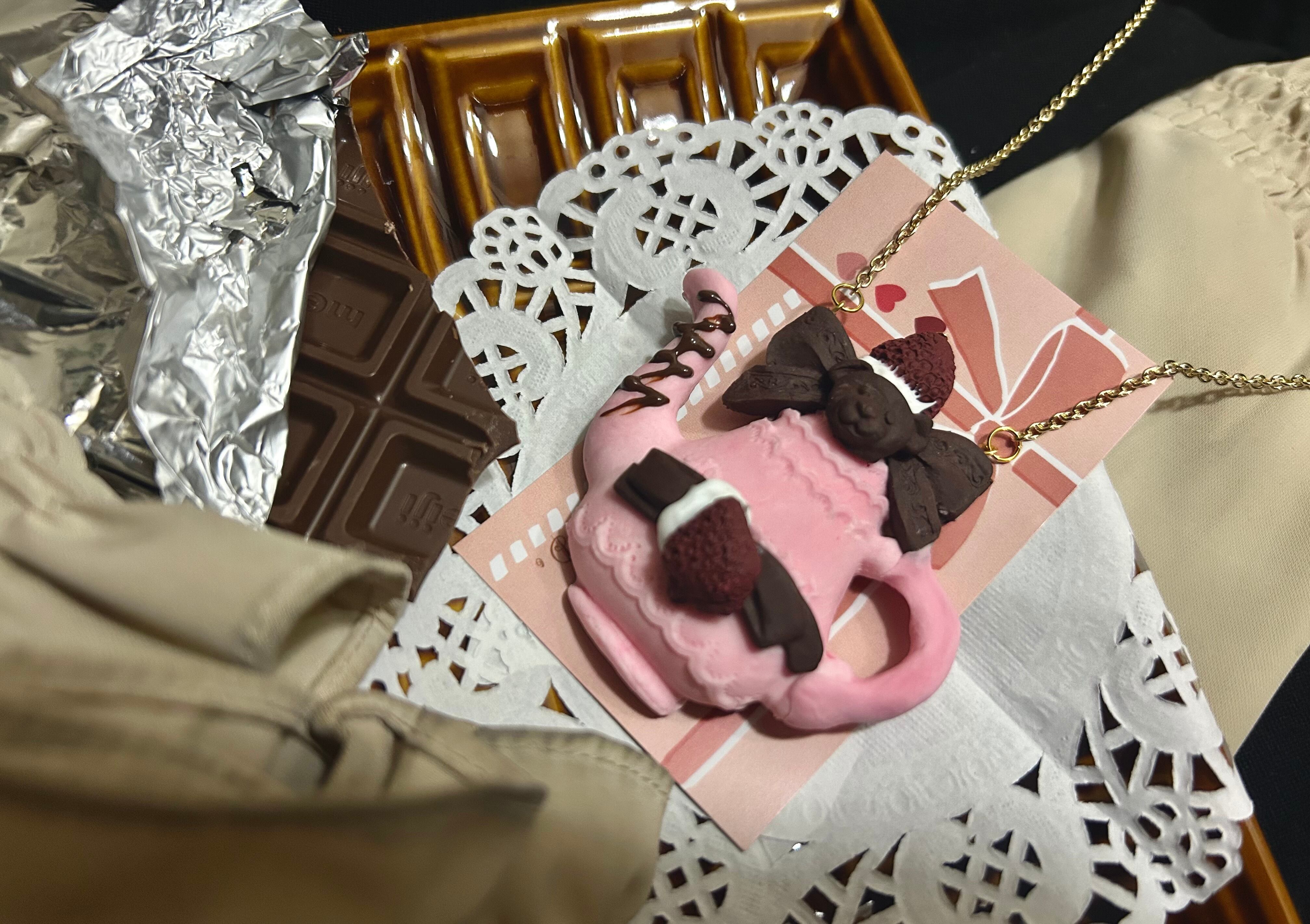 ほろ苦いチョコレートと甘酸っぱいストロベリーを掛け合わせたラブリーなティーポットのネックレス