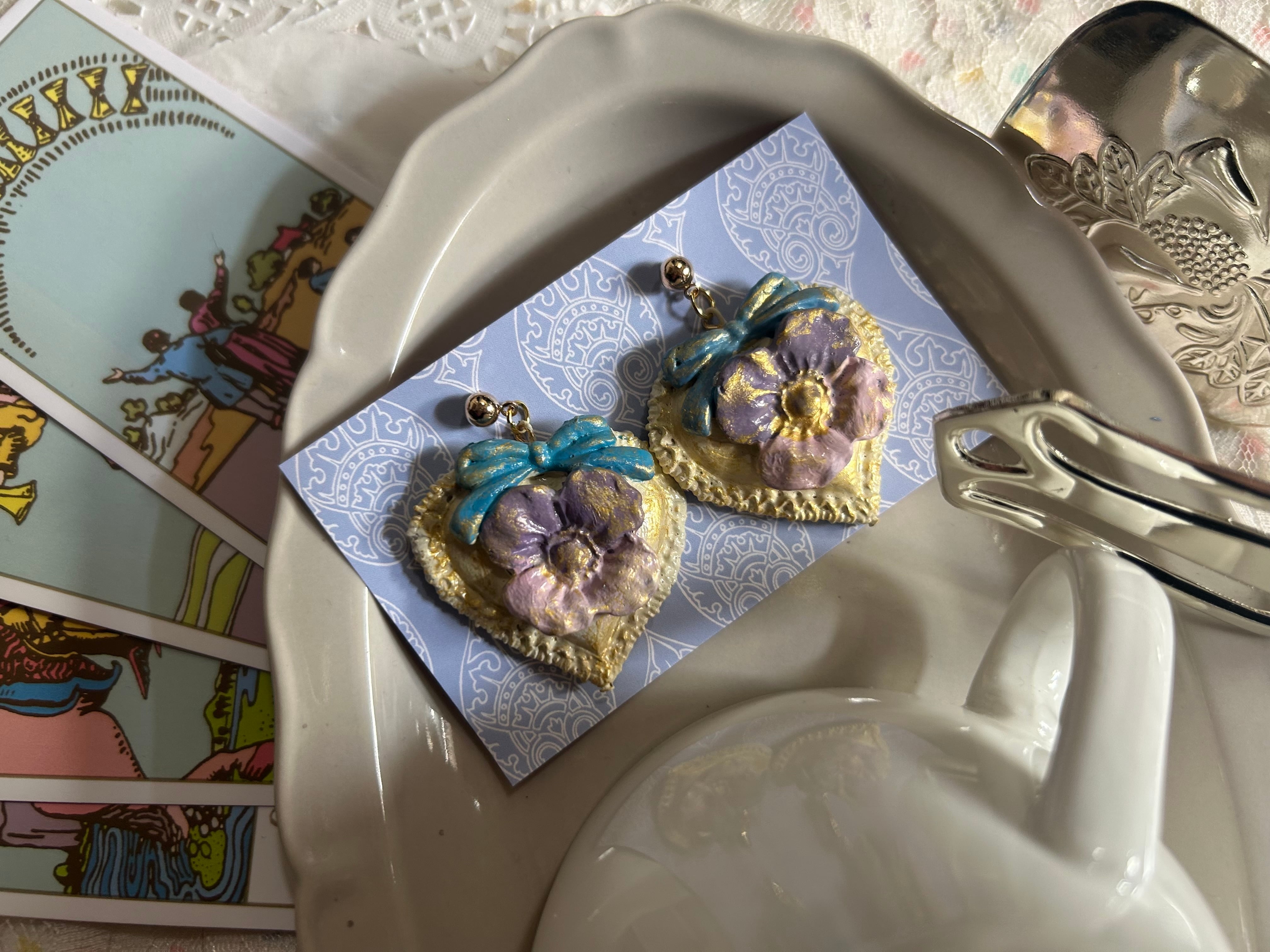 美しい春の始まりに咲いたビオラを彩ったピアス